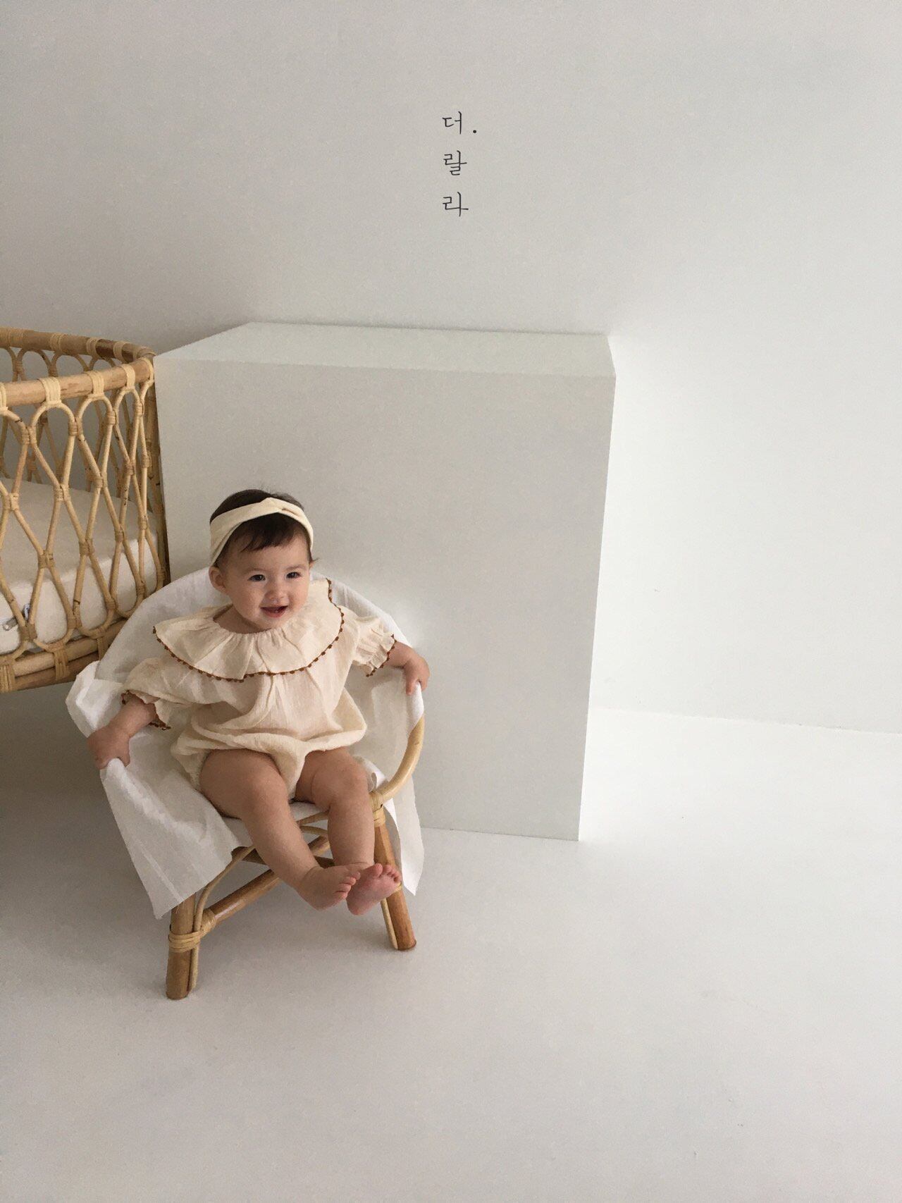 フリルカラーのついたロンパース