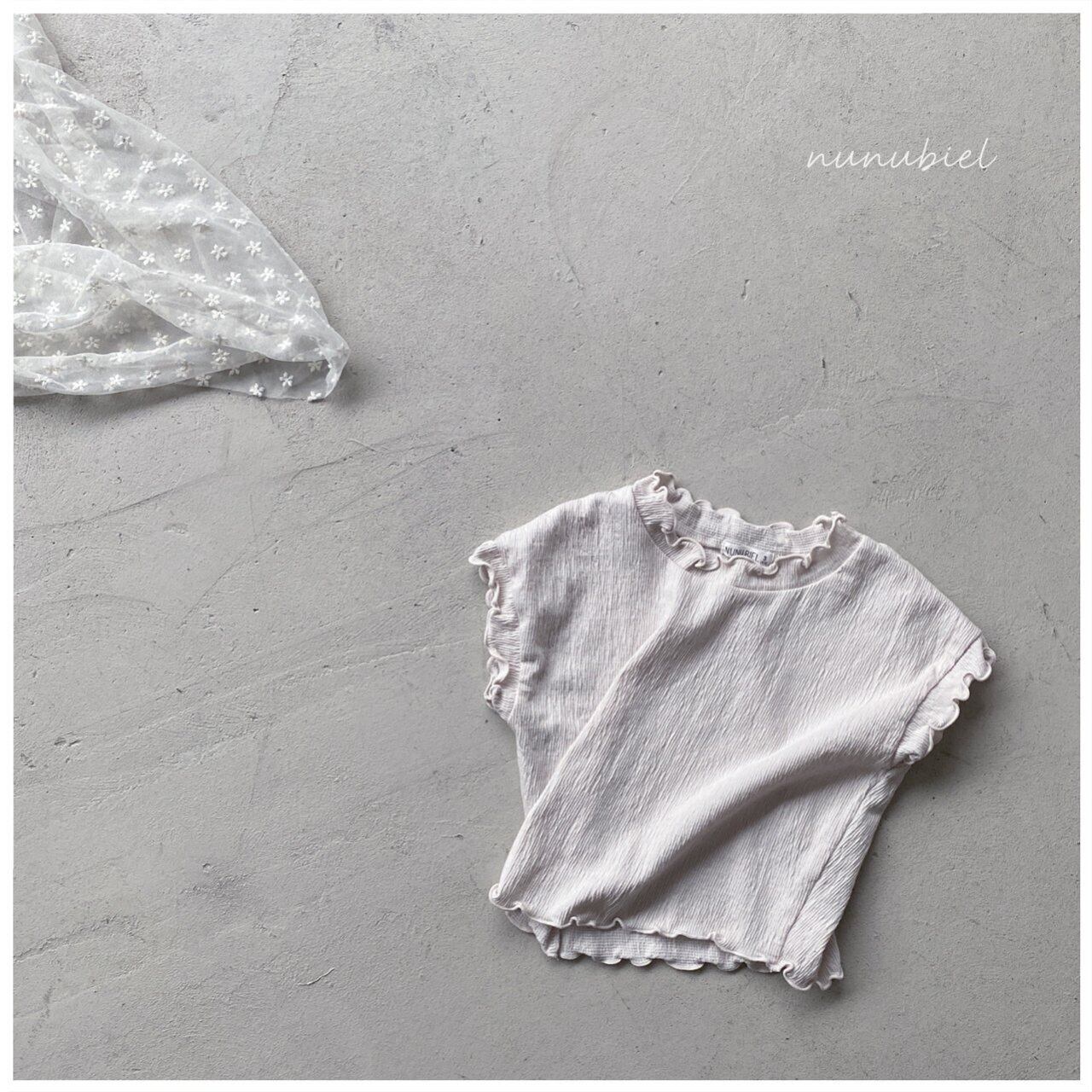 スリーブレスで襟と袖にフリルが付いているかわいいTシャツ